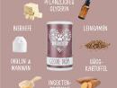 - Zusammensetzung: Pflanzliches Glycerin (Extrakte aus Ölsaaten), Kartoffelprotein, Insektenproteine aus Hermetia-Larven (11,5%), Süßkartoffel, Kartoffelflocken, antarktischer Krill (5%), Leinsamen (teils extrudiert, Omega-3-Fettsäuren 3,3%), Pflanzenöl, B
