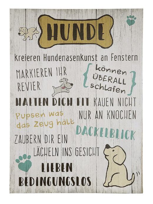 Weisheit "Hunde" braun/blau "... kreieren Hundenasenkunst an Fenstern - markieren ihr Revier - können überall schlafen - halten dich fit - kauen nicht nur an Knochen - pupsen was das Zeug hält - zaubern dir ein Lächeln ins Gesicht - Dackelblick - lieben bedingungslos"